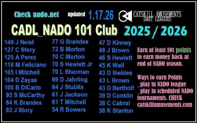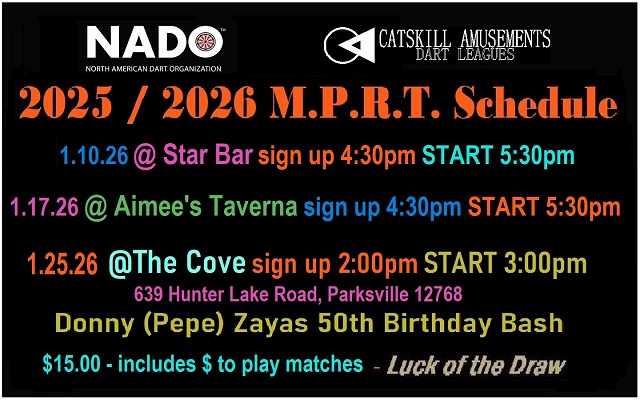 Thursday – 4 Player Teams Traveling Captains Meeting 2025/2026 Season – @ White Sulphur Springs Inn 9.25.2025 – @ 7:30pm -League STARTS 10.9.2025
